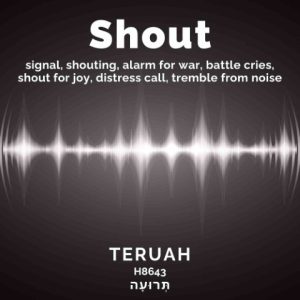 He made a promise, a wedding vow, a commitment to Abraham, Jacob and Isaac. To the Israelites at Mount Sinia. He is their King ready to Shout. One of the seven Appointent times, Set Apart Days that YHWH has given is what is mostly known as Day of Trumpets – the day the Kings’ Arrival/Return will be announced! In Hebrew day is yom, and the trumpets making a big noise / shout of the trumpets is TERUAH.
